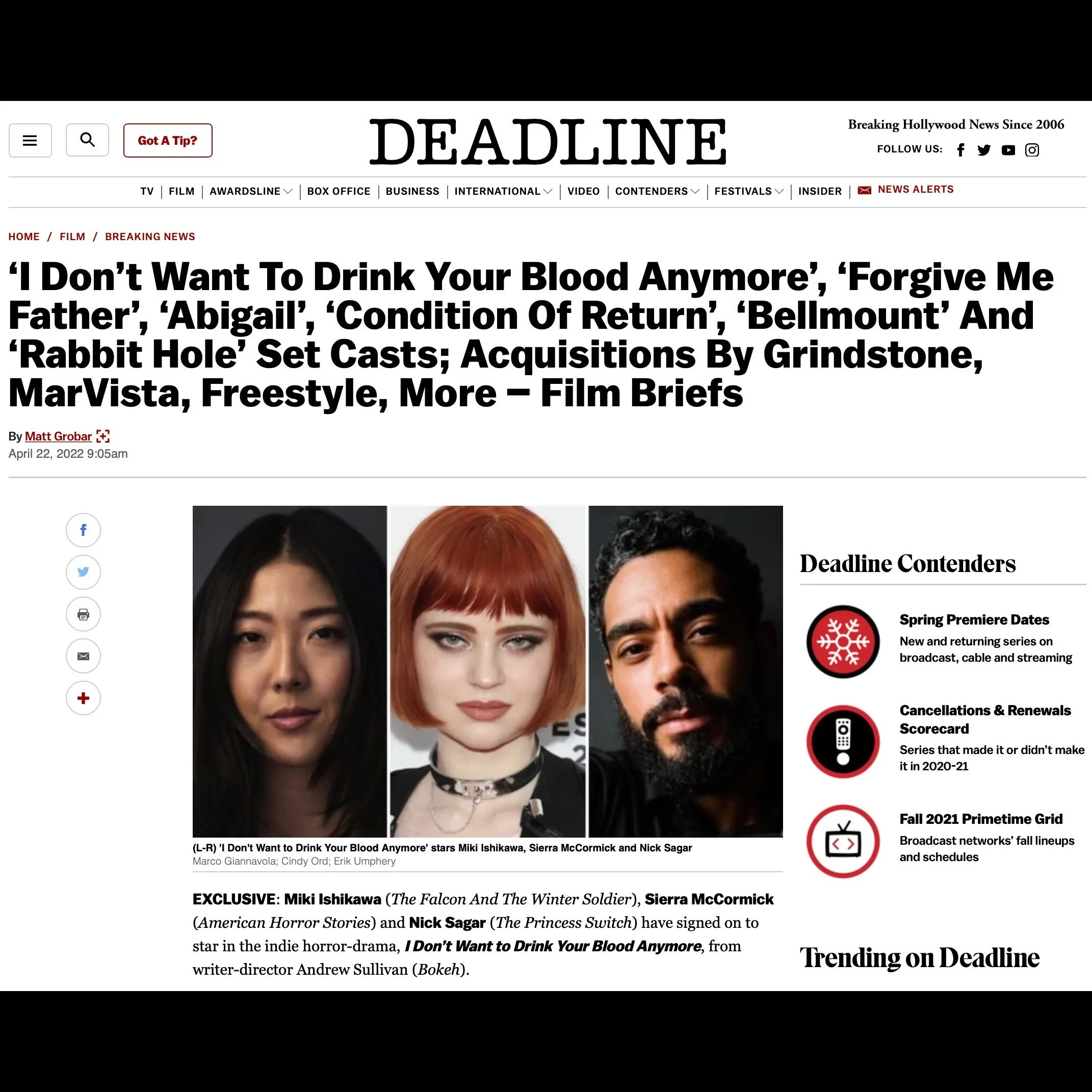 Casting announcement in Deadline.